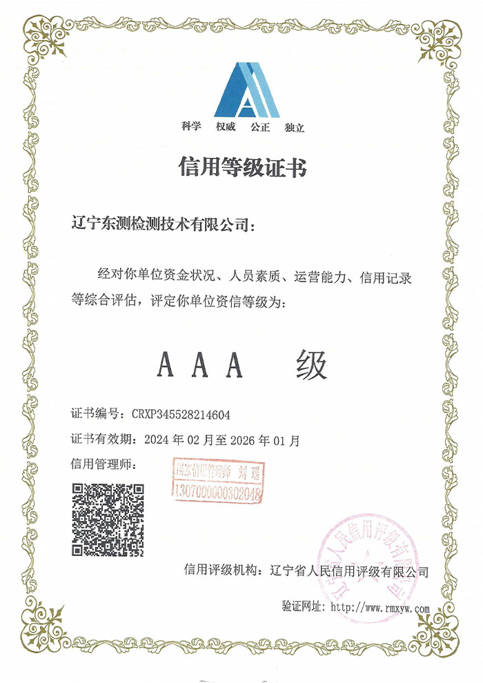 遼寧東測檢測技術(shù)有限公司成立于2007年6月21日,專注于為客戶提供計(jì)量、檢測以及技術(shù)咨詢與培訓(xùn)的第三方計(jì)量檢測機(jī)構(gòu)。遼寧東測檢測技術(shù)有限公司通過了中國合格評(píng)定國家認(rèn)可委員會(huì)認(rèn)可(CNAS),獲得檢驗(yàn)檢測機(jī)構(gòu)資質(zhì)認(rèn)定(CMA),憑借著高效的服務(wù)網(wǎng)絡(luò)、雄厚的技術(shù)實(shí)力以及全面的業(yè)務(wù)范圍,本著“科學(xué)、公正、準(zhǔn)確、真誠”的質(zhì)量方針,為社會(huì)提供優(yōu)質(zhì)計(jì)量檢測服務(wù),打造國內(nèi)具有價(jià)值的計(jì)量技術(shù)機(jī)構(gòu)。